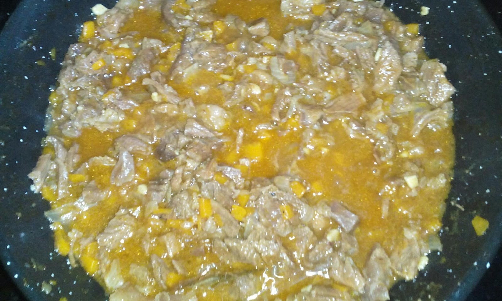 La carne tiene que cocer hasta quedar tierna( 1´30 hora aproximadamente,con fuego fuerte).